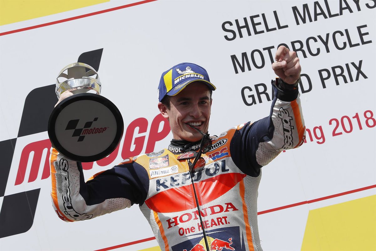 El piloto español Marc Márquez (Repsol Honda) se ha impuesto este domingo en la carrera de MotoGP del Gran Premio de Malasia, penúltima prueba del Mundial, después de presionar hasta el último momento al italiano Valentino Rossi (Yamaha), que lideraba la cita y que cometió un error cuando restaban cuatro vueltas para el final.