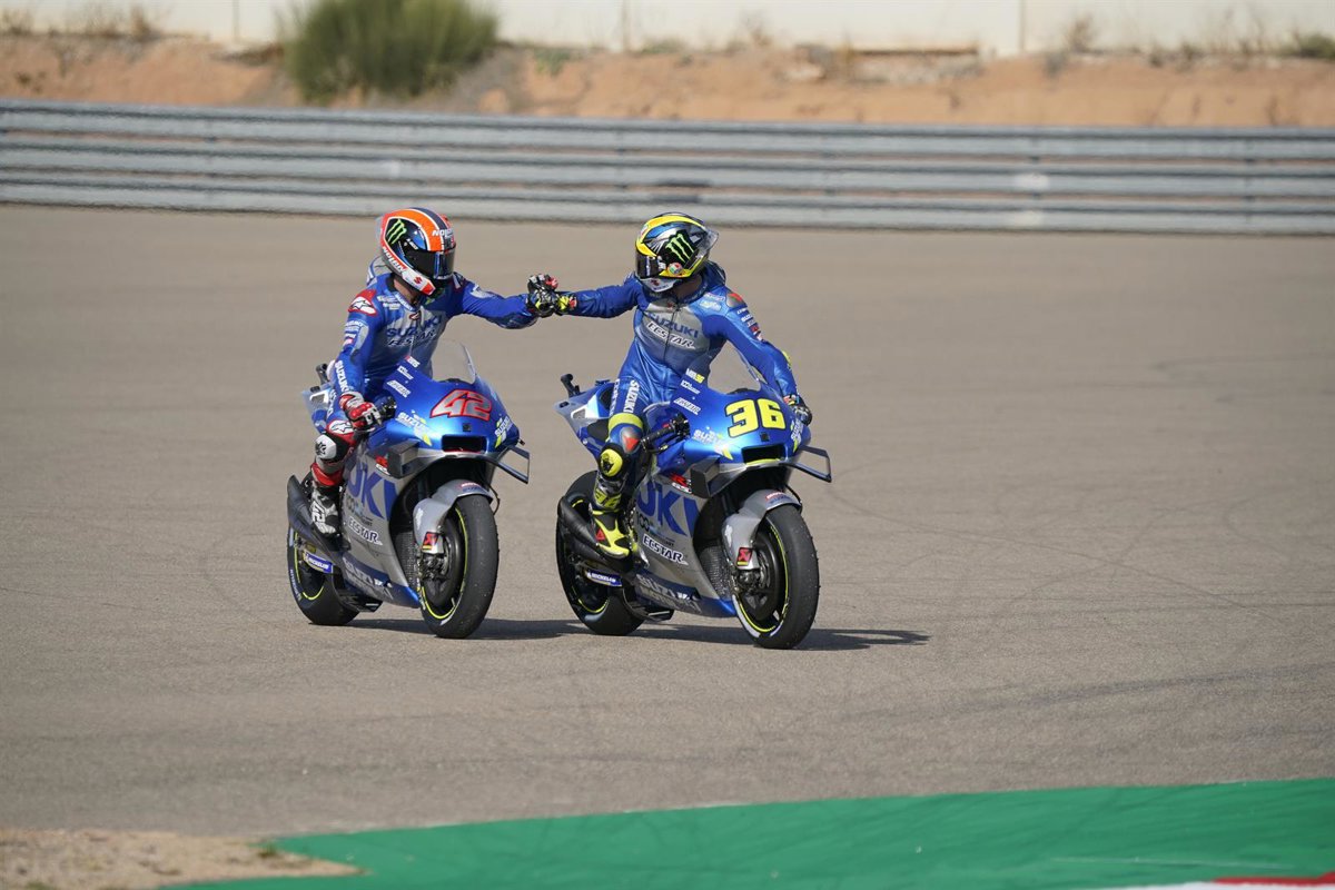 Joan Mir (36) y Alex Rins (42) se felicitan tras acabar tercero y primero en el Gran Premio de Aragón 2020 - GIGI SOLDANO / DPPI Media / AFP7 / Europa Press