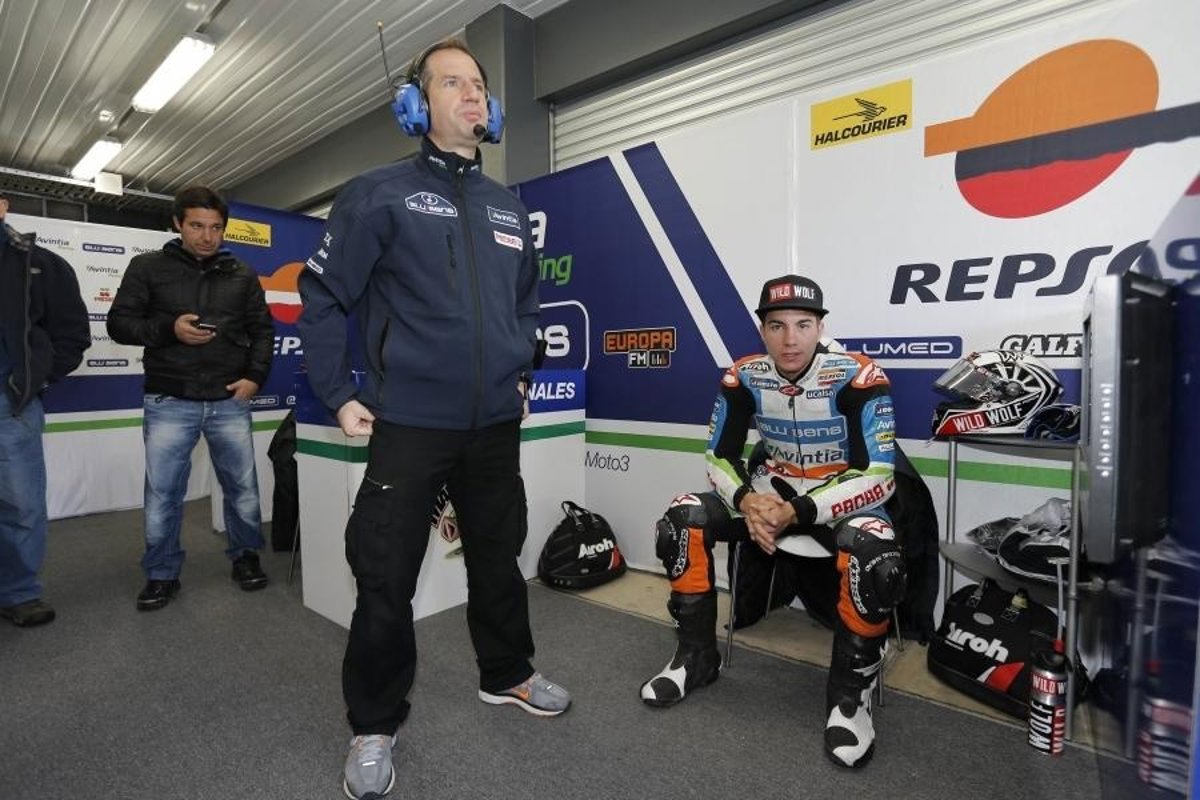 "Estoy contento y tengo buenas sensaciones. Aparte del frío y la lluvia, la primera toma de contacto con el circuito ha sido muy buena. Vuelvo a sentirme bien con la moto", declaró el piloto catalán, que a pesar de la leve caída ha marcado el cuarto mejor tiempo de una sesión que ha dominado el alemán Sandro Cortese (KTM).