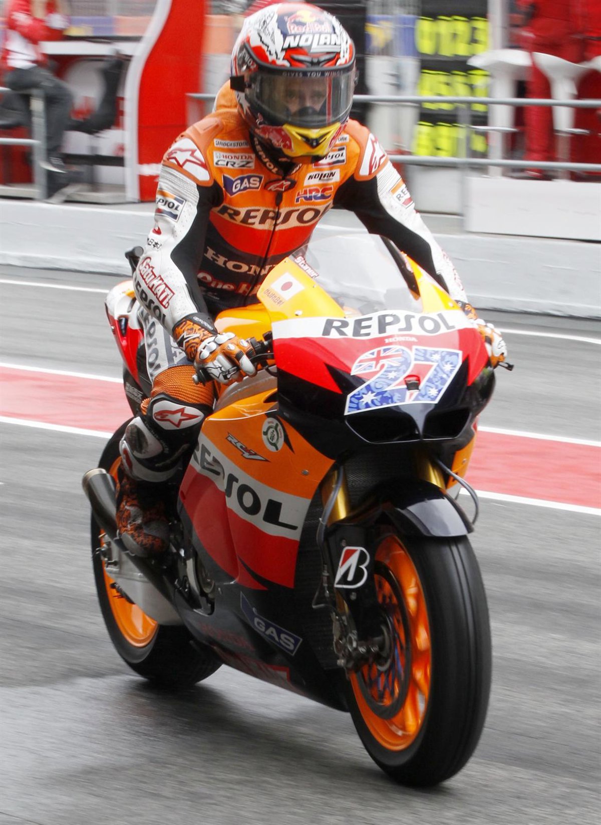 Stoner explicó haber hecho una acertada elección en los reglajes de su motocicleta. "Hemos tenido mucha suerte con el 'setting' y hemos hecho una buena carrera. He sido afortunado y me siento feliz por la carrera, no pude ir más rápido de lo que lo hice. Ha sido un fin de semana fantástico", apuntó.