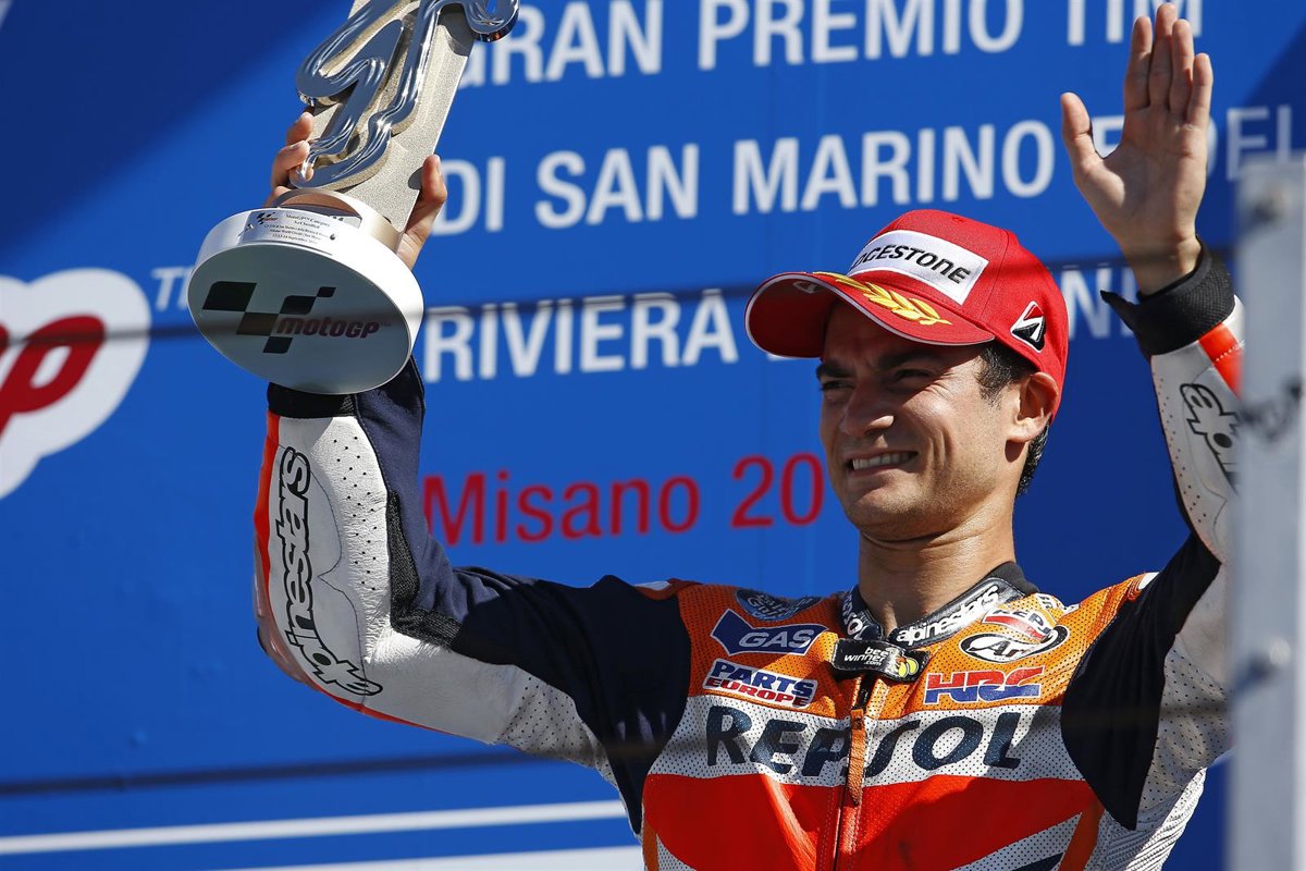 El piloto español de MotoGP Dani Pedrosa (Repsol Honda) ha manifestado a la conclusión del Gran Premio de San Marino, en el que ha concluido tercero, que ha sido "complicado hacer más", por lo que a pesar de no haber estado cerca de lograr el triunfo el catalán se ha dado por satisfecho con subir al podio.