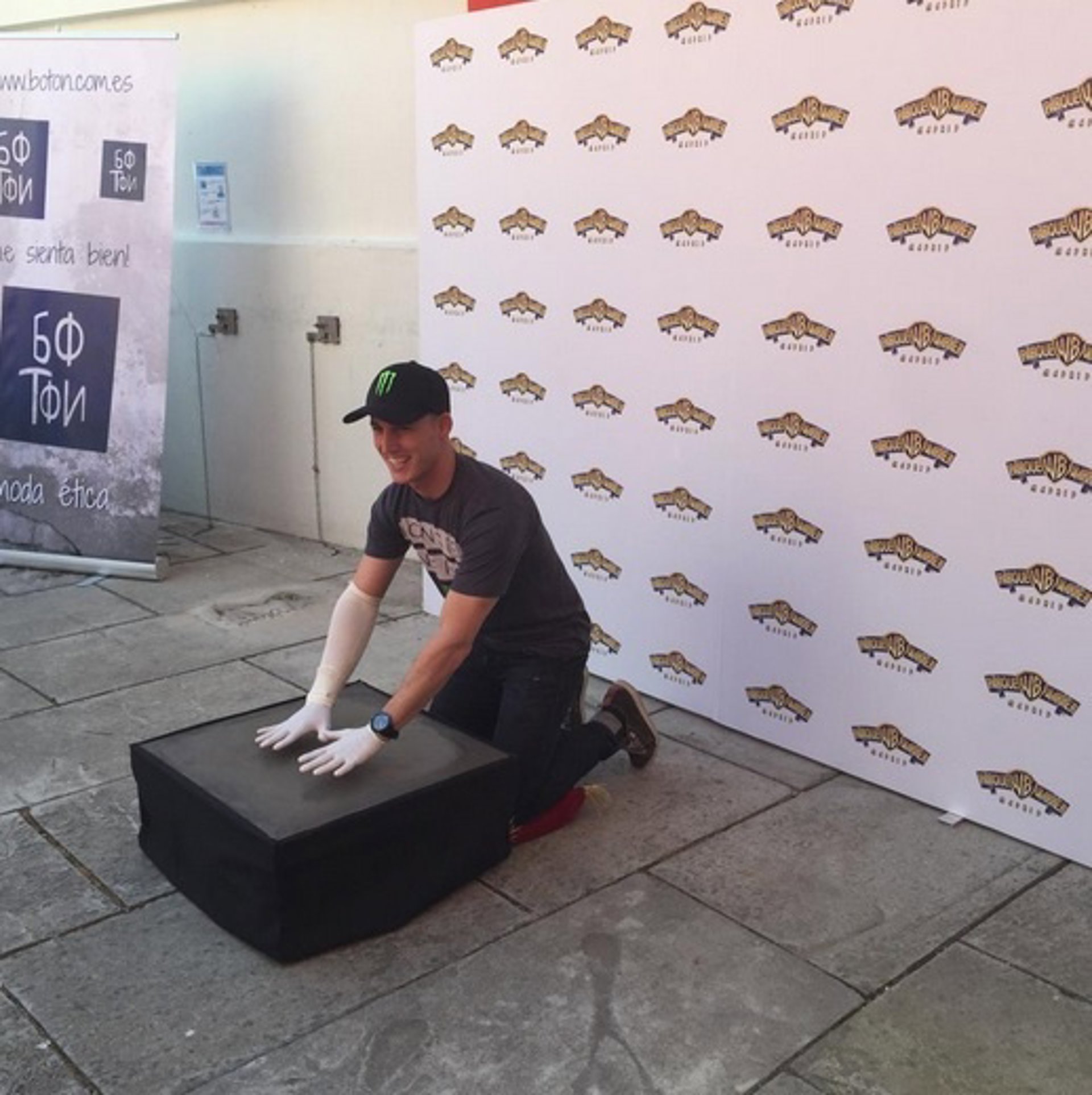 El piloto español de MotoGP Pol Espargaró ha plasmado este sábado sus manos en el Paseo de la Fama del Parque Warner, acompañado de los personajes Looney Tunes.