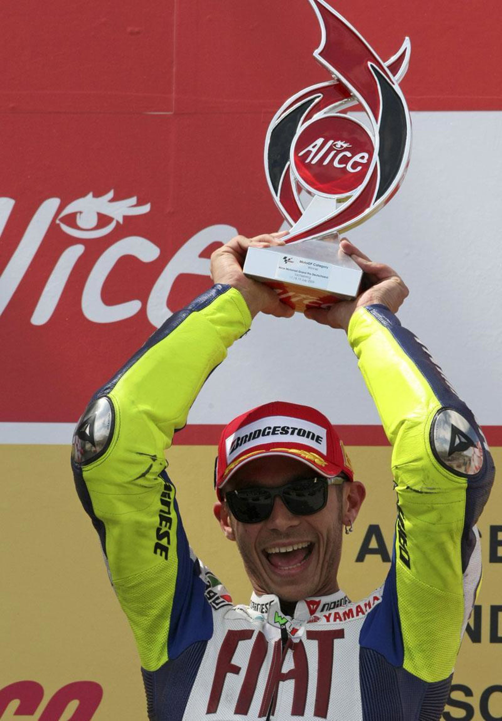 A falta de cinco vueltas, el piloto mallorquín pasó a Rossi y se puso a liderar la carrera hasta que el ocho veces campeón del mundo volvió a demostrar su enorme talento con un adelantamiento a su compañero que fue definitivo para el resultado final.