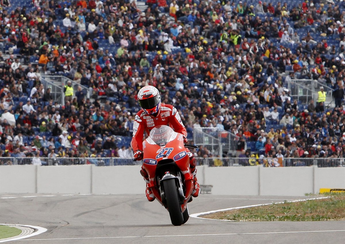 En MotoGP, el piloto de Ducati Casey Stoner reafirmó a lo largo de la carrera el dominio ejercido a lo largo del fin de semana para alzarse con su primera victoria de la temporada. El australiano logró despegarse de sus rivales desde la salida y marchó en solitario hacia el triunfo durante más de veinte vueltas.