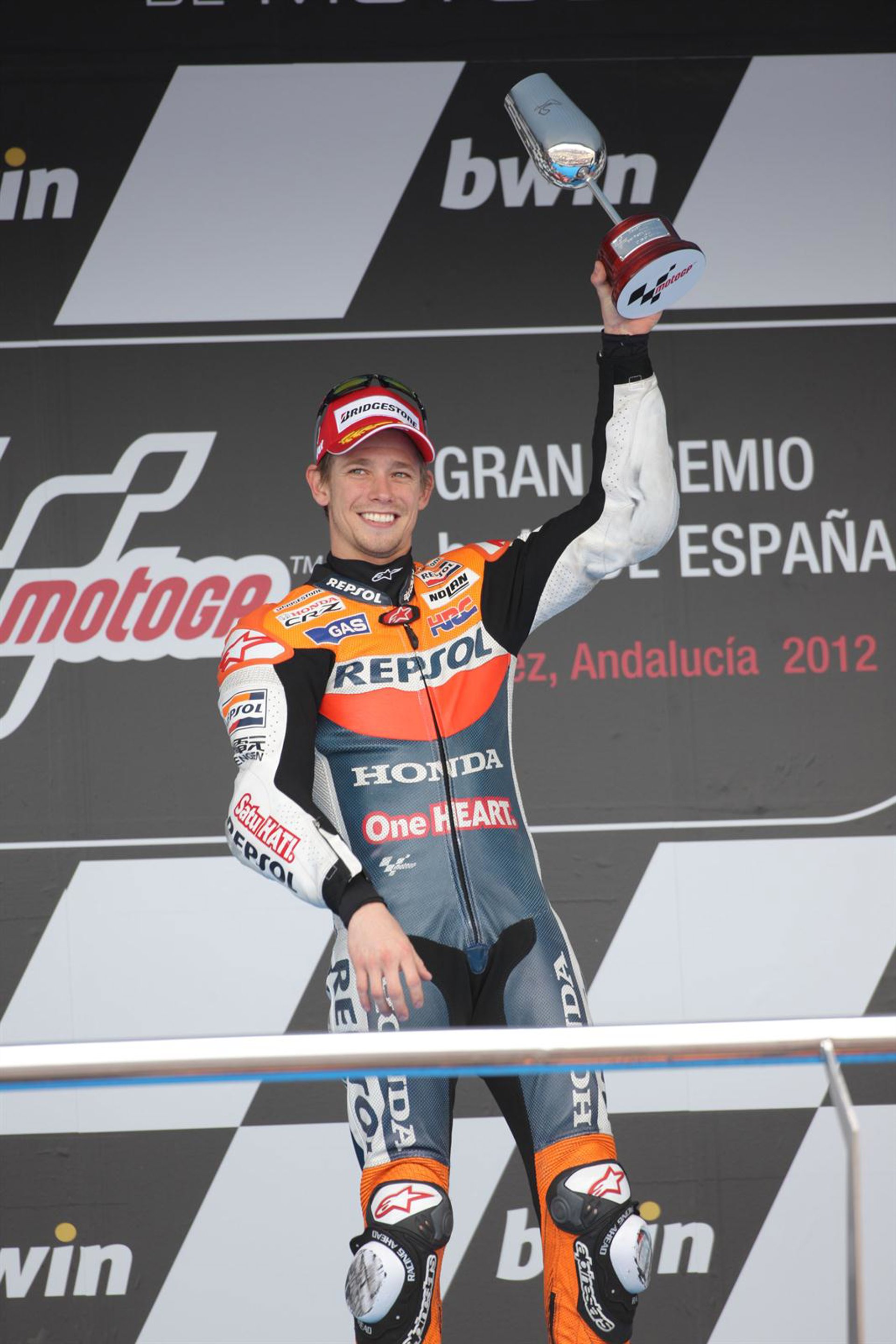 El piloto australiano Casey Stoner (Honda), vencedor de la carrera de MotoGP en el circuito de Jerez en la segunda prueba del campeonato, se mostró satisfecho por el triunfo en la prueba española a la par que aliviado al asegurar que "considerando cómo ha ido el fin de semana y lo rápidos que son Dani y Jorge en este circuito, ganar aquí lo hace todavía más especial".
