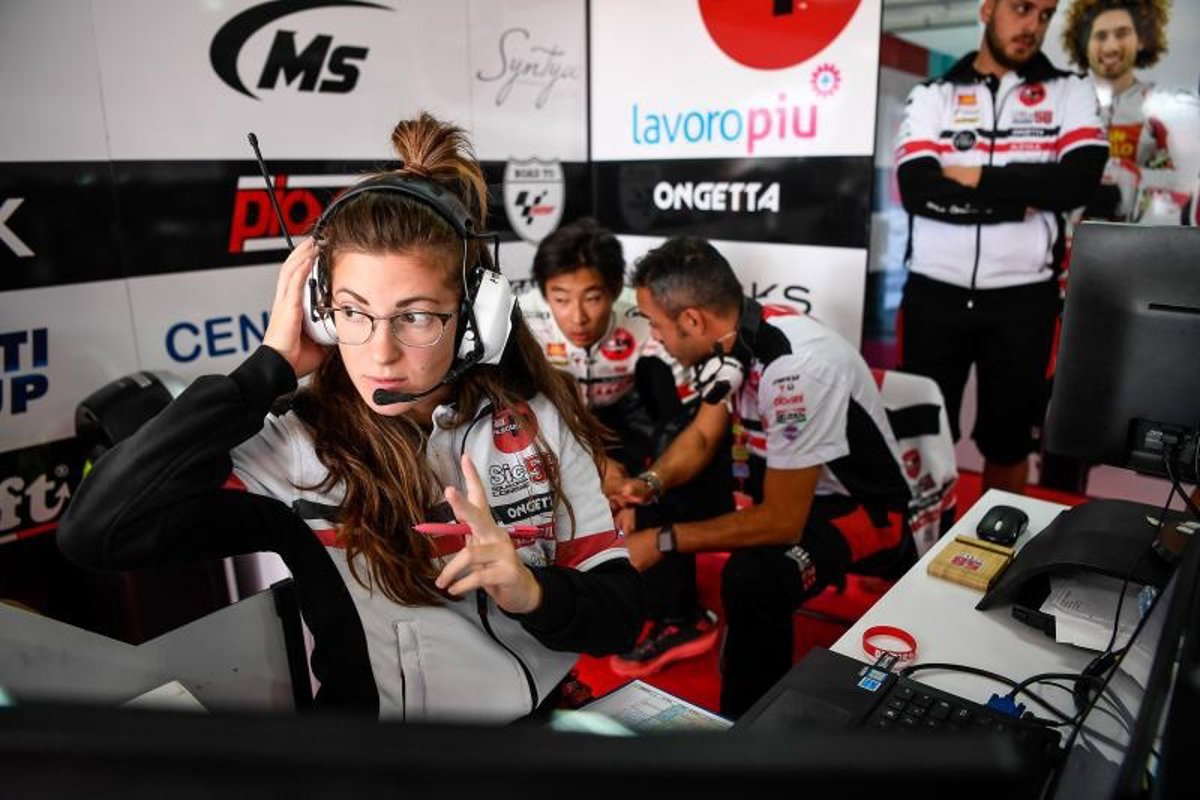 Patricia Pacheco trabajando en el box del SIC58 Squadra Corse - MOTOGP.COM