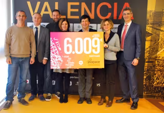 El circuito 10K Divina Pastora Valencia ha entregado este lunes un cheque solidario de 6.009 euros a la Asociación Valenciana de Ayuda a la Parálisis Cerebral (AVAPACE), organización a la que iba destinada este año los tres euros de la inscripción solidaria de esta carrera.