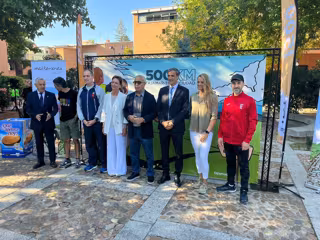 El presidente del Comité Olímpico Español (COE), Alejandro Blanco, la directora general de ADO, Jennifer Pareja, y el exmarchador Jesús Ángel 'Chuso' García Bragado han dado este jueves la salida a la Carrera de 500 kilómetros por relevos de Tajamar, que enlazará Madrid y Torreciudad (Huesca).