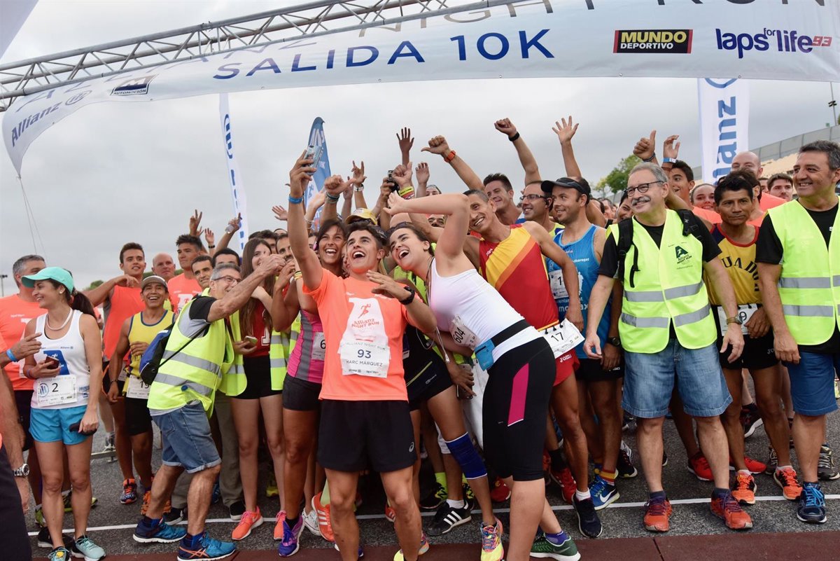 Los pilotos españoles Álex y Marc Márquez fueron los encargados de dar el pistoletazo de salida de la segunda edición de la 'Allianz Night Run', la carrera atlética benéfica impulsada por Allianz y el líder del Mundial de motociclismo, a través de su proyecto conjunto Laps for Life 93, y celebrada este viernes sobre el asfalto del circuito de Montmeló.