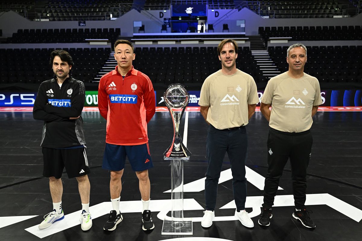 Antonio Vadillo (primero por la derecha) antes de la final de la Liga de Campeones de fútbol sala 24-25 - PALMA FUTSAL