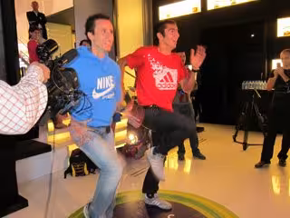 Los dos mediofondistas se batieron en dos partidas de 'Kinect Sports', sobre 100 metros, con triunfo en ambas del sevillano Olmedo en un acto que tuvo lugar en la Flagship Store de Telefónica en Madrid.