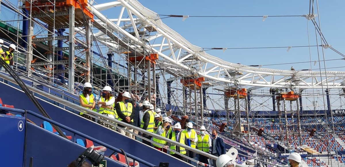 Ribó ha expuesto que las obras que se hacen en el Ciudad de Valencia le han "sorprendido" por su "gran potencialidad tecnológica" y por hacerse "sin ocupar prácticamente espacio público", además de mostrar satisfacción por esta actuación y desear el club "que todo vaya bien" y "éxitos deportivos cada día más grandes". En este punto, ha resaltado "las miles de personas que siguen al Levante UD con mucha pasión".