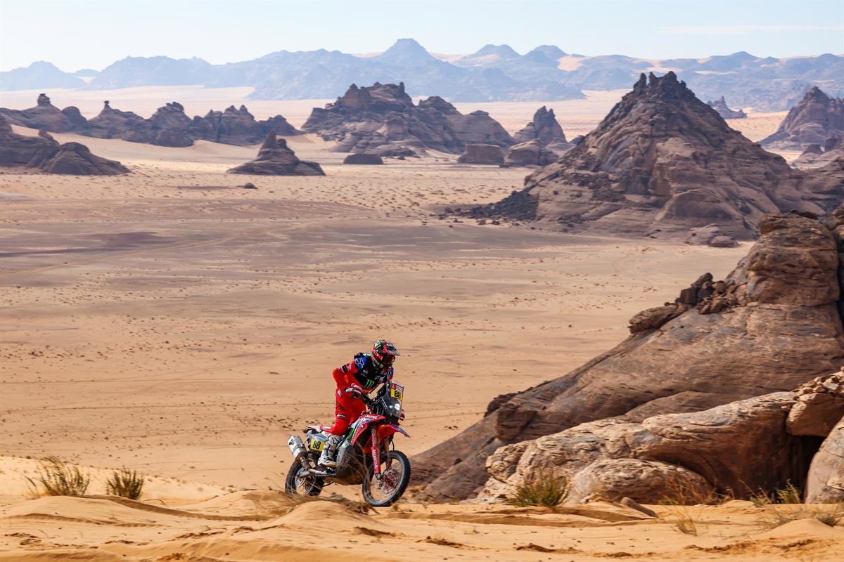 El vencedor de la primera etapa, el australiano Daniel Sanders (GasGas) cedió la primera plaza al entrar en meta a 24:58 del español, aunque todavía se mantiene en puestos de podio -tercero-. El salmantino Lorenzo Santolino (Sherco), el mejor español el domingo, acabó decimosexto a 15:30 y es sexto, y el expiloto de MotoGP Danilo Petrucci (KTM) tuvo que abandonar por una avería en su moto.
