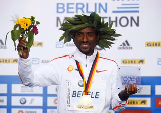 El atleta etíope Kenenisa Bekele ha ganado el maratón de Berlín con un registro de 2:01:41 y se ha quedado a tan solo dos segundos del récord mundial de Eliud Kipchoge - REUTERS / HANNIBAL HANSCHKE