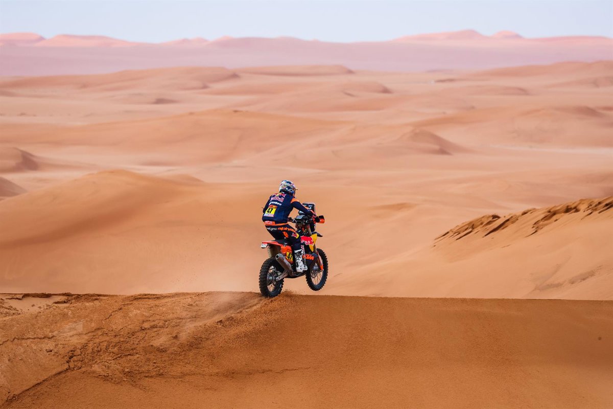 El mejor español en la etapa, la primera en el temido 'Empty Quarter', fue Tosha Schareina (KTM), 16º a 7:18, mientras que Lorenzo Santolino (Sherco) fue 17º a 7:26. En la general, Santolini pierde un puesto y es undécimo a 41:55, con Schareina 15º a 1:26 horas.