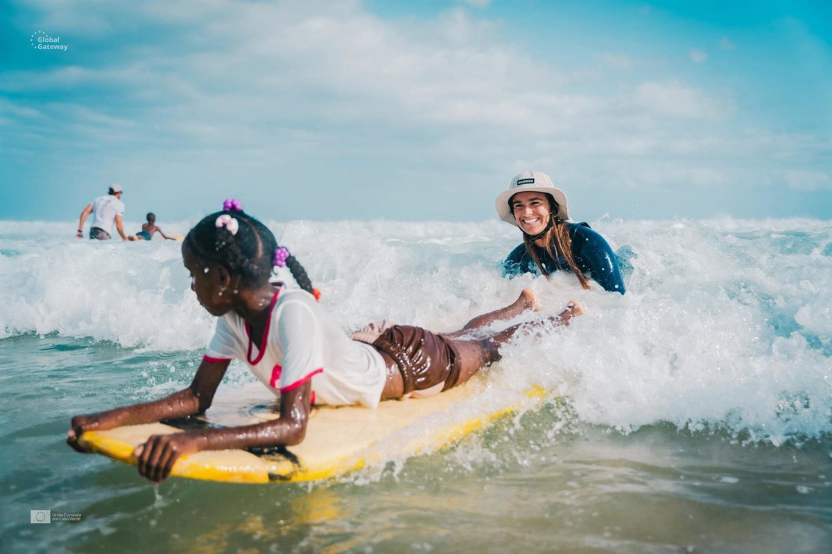 La sevillana participó en esta iniciativa de la Unión Europea en el país africano junto a los también surfistas Matteo Iachino, Nick Pescetoo, Mariana Rocha y Joana Andrade. En la isla tuvieron la oportunidad de ir al mar con más de cien niños y niñas para enseñarles a practicar surf, en un proyecto social que combina dos almas, la del territorio y la comunidad, y la del deporte internacional.