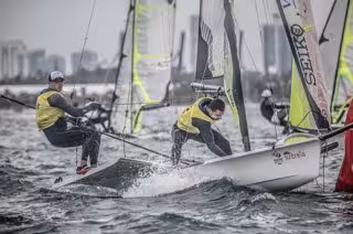 En Nacra 17 se han clasificado para la Medal Race las dos tripulaciones españolas, las del vasco Iker Martínez y Julia Rita en sexta posición y la del gallego Fernando Echávarri y la canaria Tara Pacheco en novena; ninguno de los equipos españoles tiene opciones a acabar en puestos de honor. Martínez y Rita realizaron un 1-8-32 y Echávarri y Pacheco un 14-23-11. Son primeros los australianos Jason Waterhouse y Lisa Darmain.