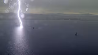 Impactante imagen del rayo que cayó a unos metros de la embarcación del Luna Rossa Prada Pirelli, participante en la America's Cup en Barcelona de 2024. - AMERICA'S CUP