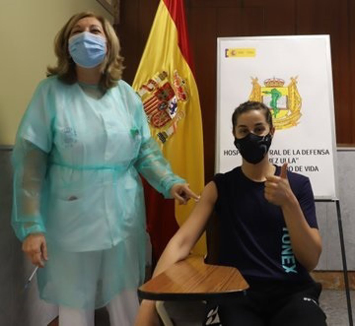 La campeona olímpica de bádminton, Carolina Marín, ha recibido este viernes en el Hospital Militar Gómez Ulla de Madrid la primera dosis de la vacuna de Pfizer contra la COVID-19 para afrontar los Juegos de Tokyo 2020, después del acuerdo para proteger frente a la pandemia a la 'familia olímpica' que viaje este verano a la capital nipona.