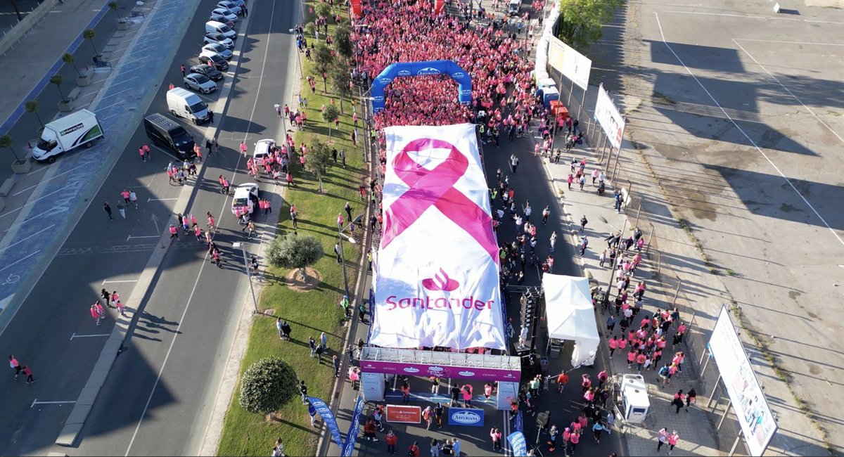 La Carrera de la Mujer de Valncia despliega un lazo rosa gigante - BANCO SANTANDER