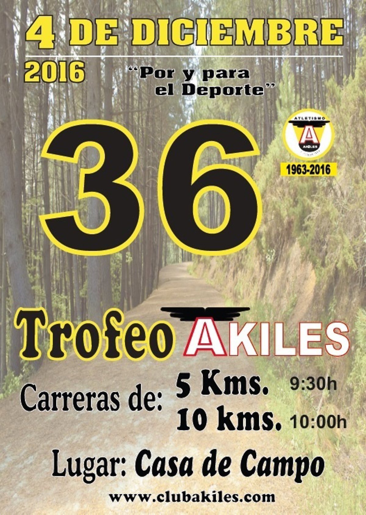 La Casa de Campo acoge el próximo 4 de diciembre la XXXVI edición de la carrera popular Trofeo Akiles, que se disputará sobre dos distancias, 5 y 10 kilómetros con salida en la zona del Lago desde las 9:30 horas y la meta en el campo de fútbol, cerca de la salida, informan los organizadores en un comunicado.