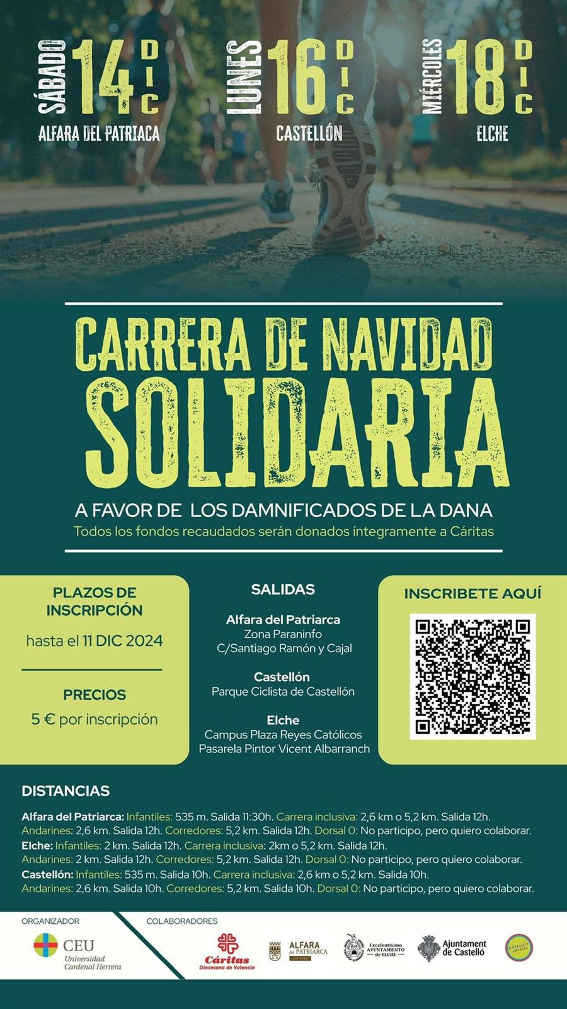 La Universidad CEU Cardenal Herrera celebrará este miércoles, a partir de las 10:00 horas, la Carrera Solidaria de Navidad en Elche, que en esta edición buscará recaudar fondos para ayudar a los afectados por la DANA.