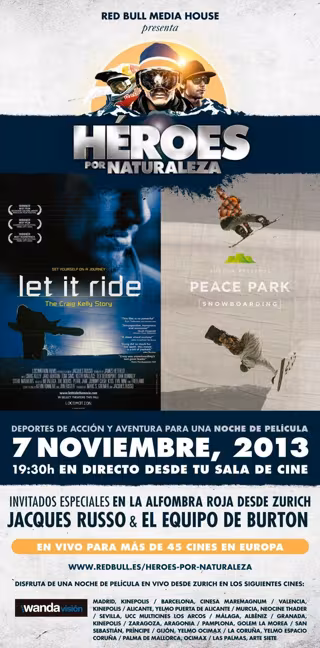 'Héroes por Naturaleza' es un escaparate mensual de cine de películas de deportes de acción y aventura que tiene lugar los primeros jueves de cada mes y que no sólo reúne en una sala a la audiencia frente a una gran pantalla, sino que conecta al público con sus protagonistas.