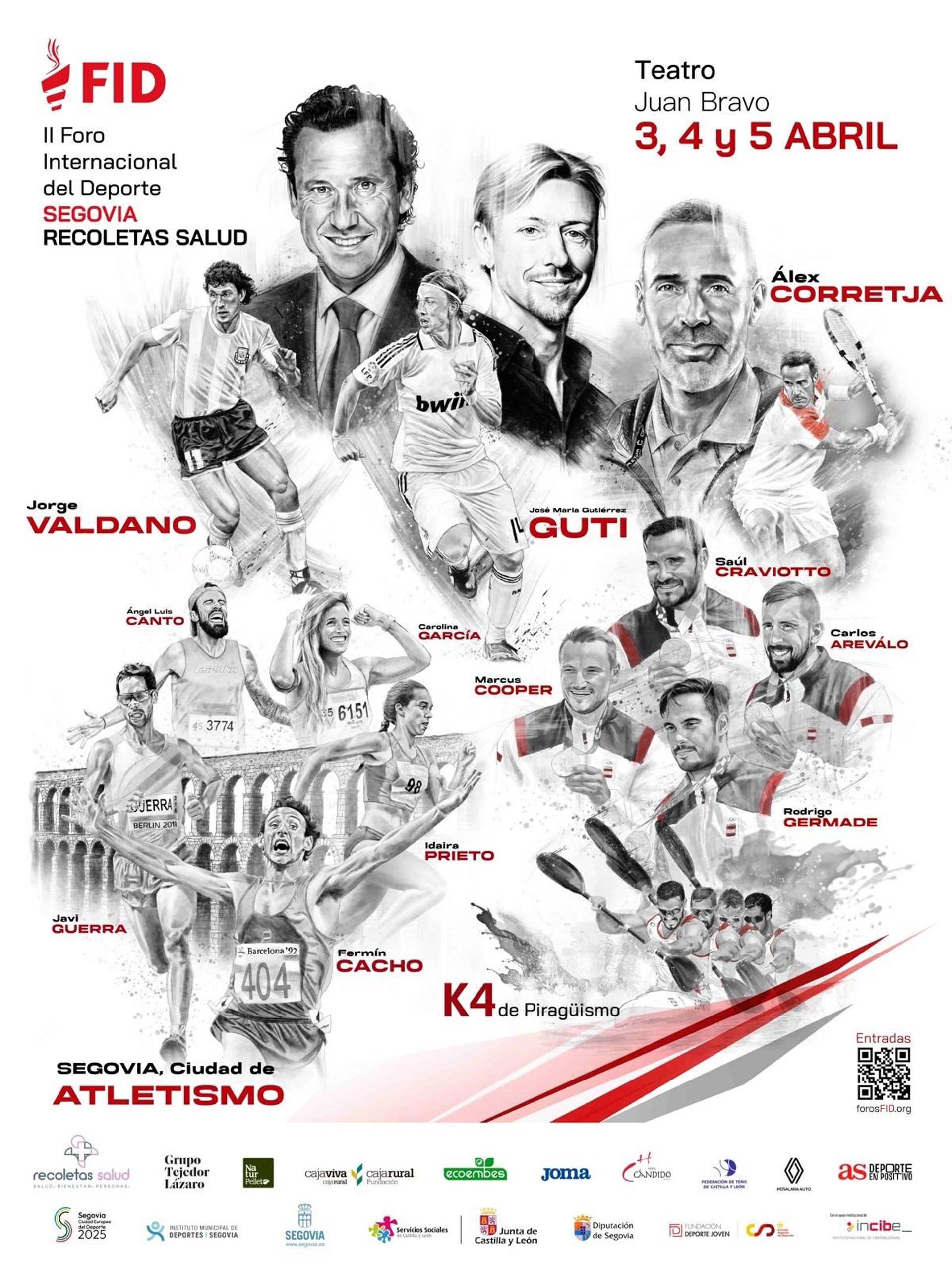 El palista Saúl Craviotto, el deportista español con más medallas, seis, en los Juegos Olímpicos, el exatleta Fermín Cacho, oro y plata en 1.500 en Barcelona'92 y Atlanta'96, los exfutbolistas Jorge Valdano y José María Gutiérrez 'Guti', y el extenista Álex Corretja participarán, entre otros, en el II Foro Internacional del Deporte (FID) Recoletas Salud, que tendrá lugar del 3 al 5 de abril en el Teatro Juan Bravo de Segovia.