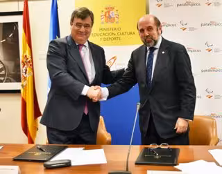 El presidente del Consejo Superior de Deportes (CSD), Miguel Cardenal, y el secretario general del Comité Paralímpico Español (CPE), Miguel Sagarra, han firmado este martes el convenio de colaboración para el desarrollo de actuaciones conjuntas en el ámbito deportivo para los Juegos de Tokyo 2020.