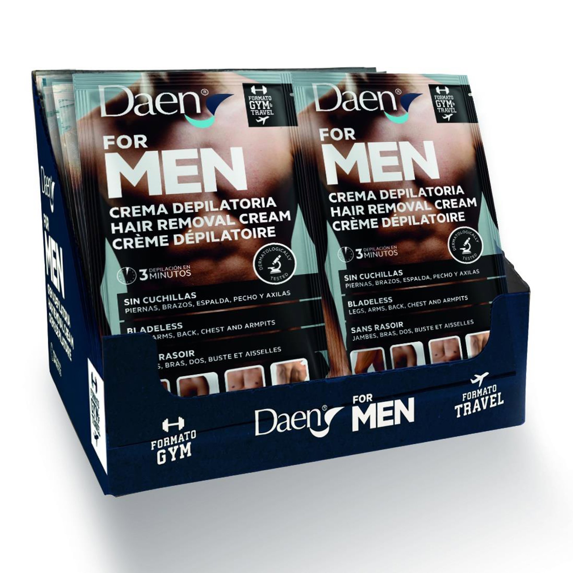 Como novedad Daen estrena nuevo formato en su depilación masculina para añadir al neceser de viaje o del gimnasio. Más cómodo, fácil y transportable es su nuevo formato de depilación masculina, pensado para aquellos que no quieren dedicar tiempo de más a la depilación y que quieren poder hacerlo en cualquier lugar.