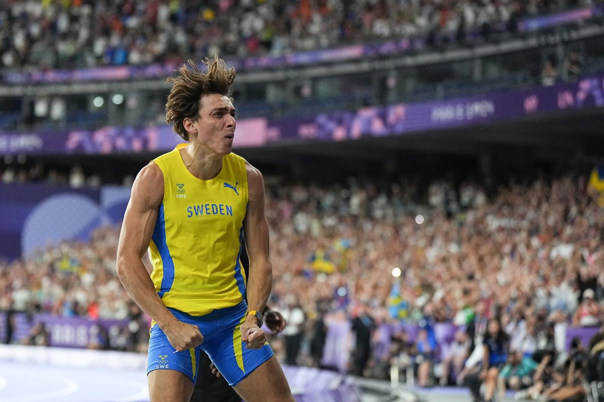 Archivo - Armand 'Mondo' Duplantis celebra uno de sus saltos en los Juegos Olímpicos de París de 2024 - Michael Kappeler/dpa - Archivo