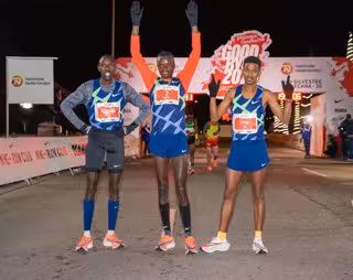 De izda a dcha: Chelimo, Ebenyo y Eyob tras la carrera masculina de la San Silvestre Vallecana 2020 - SAN SILVESTRE VALLECANA