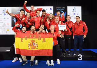 Italia, país con 130 medallas olímpicas en esgrima y segundos del ranking mundial en espada, impidió la final a España. Para lograr el bronce en el Campeonato de Europa, el equipo español derrotó (43-32) a República Checa.