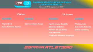 La selección española de atletismo de larga distancia acudirá con tres corredores al Campeonato del Mundo de 100 kilómetros de Berlín, el 27 de agosto, y con ocho al Campeonato de Europa de 24 horas de Verona (Italia), el 17 y 18 de septiembre.