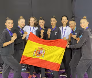 Ana Arnau, Inés Bergua, Valeria Márquez, Patricia Pérez y Salma Solaun firmaron una notable actuación que tuvo su recompensa con el bronce. Además, Polina Berezina -en mazas- y Alba Bautista -aro y cinta- se clasificaron para la final por aparatos. En la general, Bautista acabó 9 y Berezina, 11.