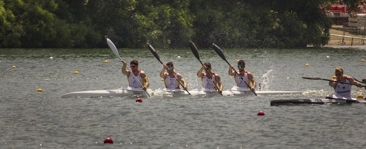 La decimonovena edición del Europeo de aguas tranquilas, que reúne a 40 países del continente, comenzó con la flota española exhibiendo su potencial tras el número de pases logrados para final y por la significación de algunos resultados, como el obtenido por el K4 500 español, integrado por los campeones olímpicos Saúl Craviotto, Cristian Toro, Marcus Cooper, y Rodrigo Germade, con la victoria en la eliminatoria, por delante de su principal adversario, Alemania, con la que logra el pase directo a final.