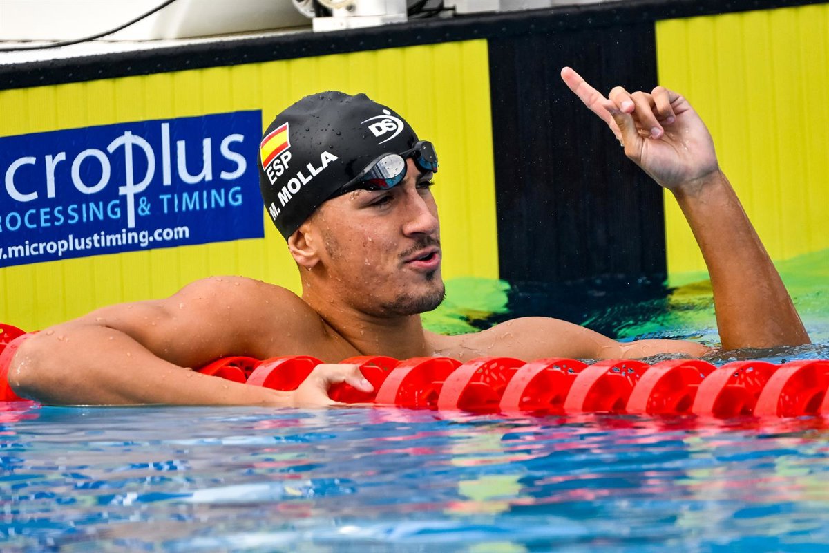 Por otra parte, Mollà ganó por la mañana su serie preliminar de los 50 mariposa con su mejor marca de siempre (23.34), pasando a semifinales con el decimocuarto tiempo de los 16 clasificados. El francés Maxime Grousset fue el más rápido de todas las preliminares, con un registro de 22.74; el británico Jacob Thomas Taylor Peters, con 22.85, fue segundo.