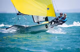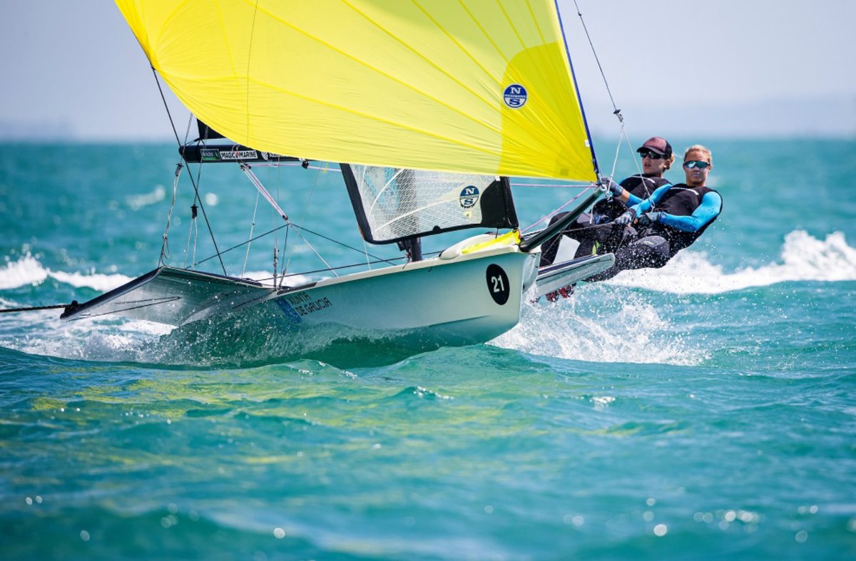 La delegación española de vela en el Campeonato del Mundo de 49er, 49erFX y Nacra 17 comienza a tomar posiciones después de la segunda jornada este miércoles, con viento de menos a más que aprovecharon Iker Martínez y Olga Maslivets (Movistar), el mejor equipo clasificado con un 9 en los Nacra 17.