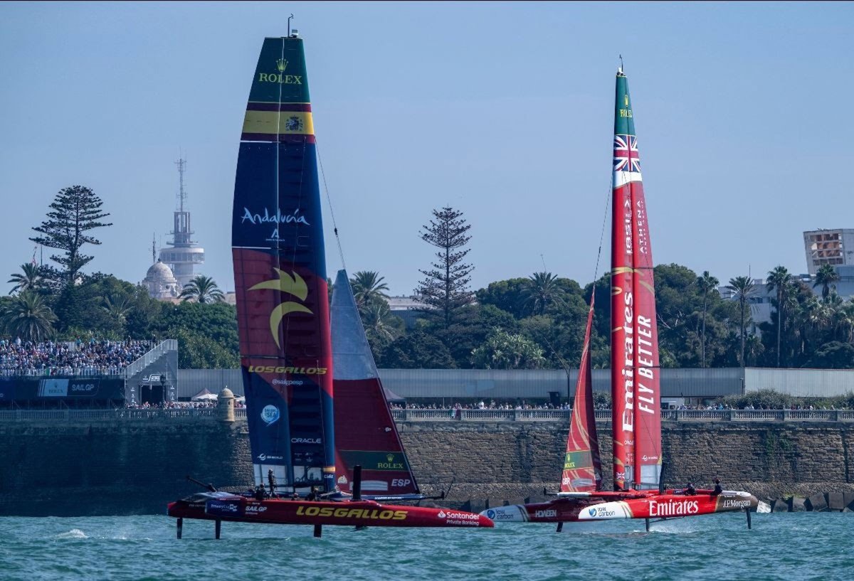 España se vio abocada a una importante remontada en el DP World Spain Sail Grand Prix | Andalucía-Cádiz, después de ser séptima este sábado en la primera jornada, con lo que tendrán que escalar posiciones para luchar por la cita en casa y de cara a estar en la Gran Final de la temporada 2025 del Rolex SailGP Championship.