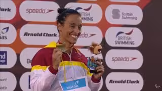 En la categoría femenina, la aragonesa Teresa Perales se proclamó por segunda vez en este Mundial y por segunda vez en su carrera campeona del mundo al vencer con un tiempo de 1:21.77. Teresa dominó de principio a fin y logró su sexta medalla en Glasgow, dos oros, dos platas y dos bronces en sus seis pruebas individuales, y tres diplomas en las pruebas de relevos.