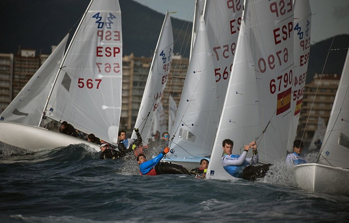 La primera jornada de competición contó con un viento de Garbí, suroeste de una intensidad media de 15 nudos, que permitió la celebración de las tres mangas programadas y con las mejores noticias para la vela española en 420, la clase más numerosa.