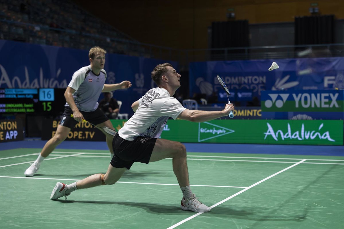 Los daneses Daniel Lundgaard y Mads Vestergaard, durante el Campeonato de Europa de 2026. - BÁDMINTON ESPAÑA / CARLOS DÍAZ