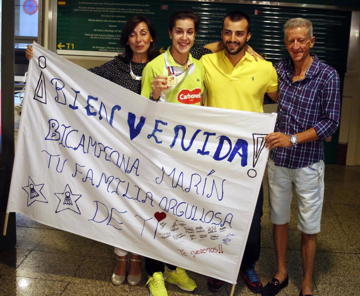 Carolina Marin areopuerto Madrid Barajas, junto a sus padres y su novio - DANIEL RUIZ MONTERO - Archivo