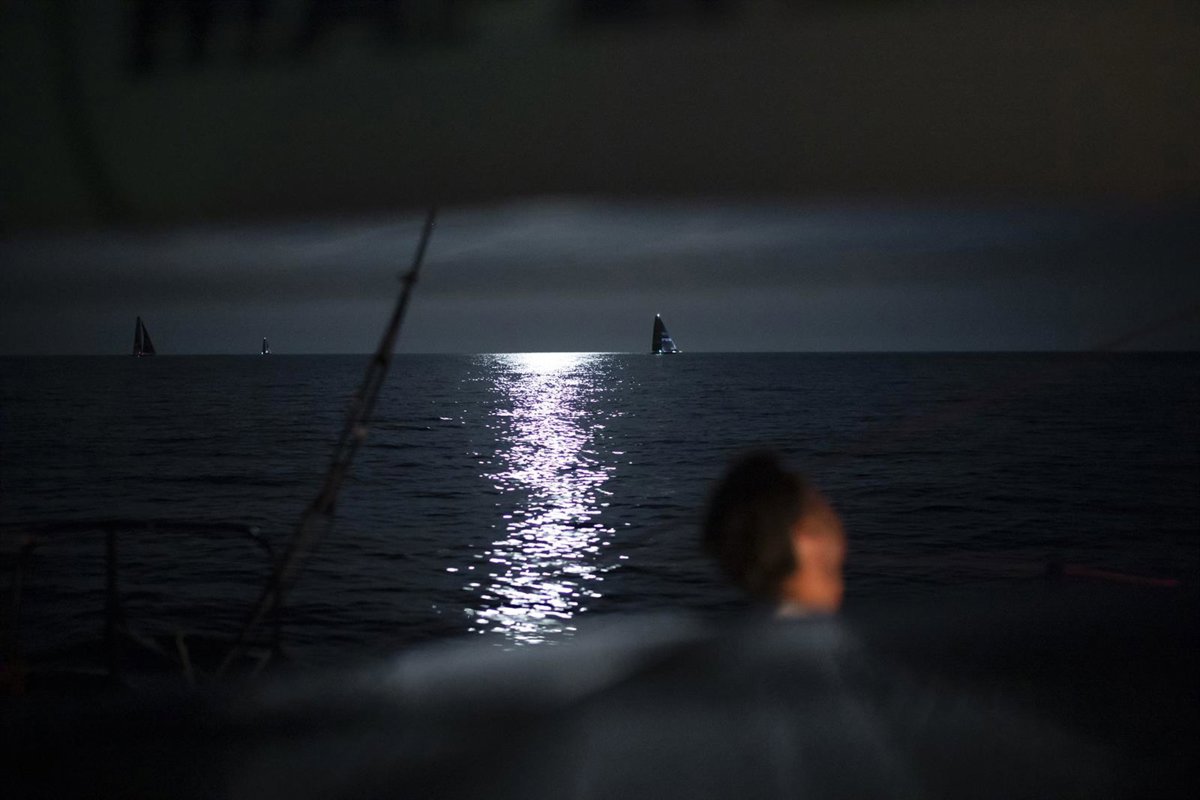 Así, a excepción de un breve periodo hacia las 21.00 horas, cuando esa brisa terrestre aceleró a la flota hasta superar por momentos los 10 nudos, el progreso fue dolorosamente lento para todos los equipos, que ganaban y perdían millas a la par. Al menos, un cielo despejado permitió a los tripulantes disfrutar del eclipse lunar denominado 'Luna de Sangre' de este domingo por la noche.