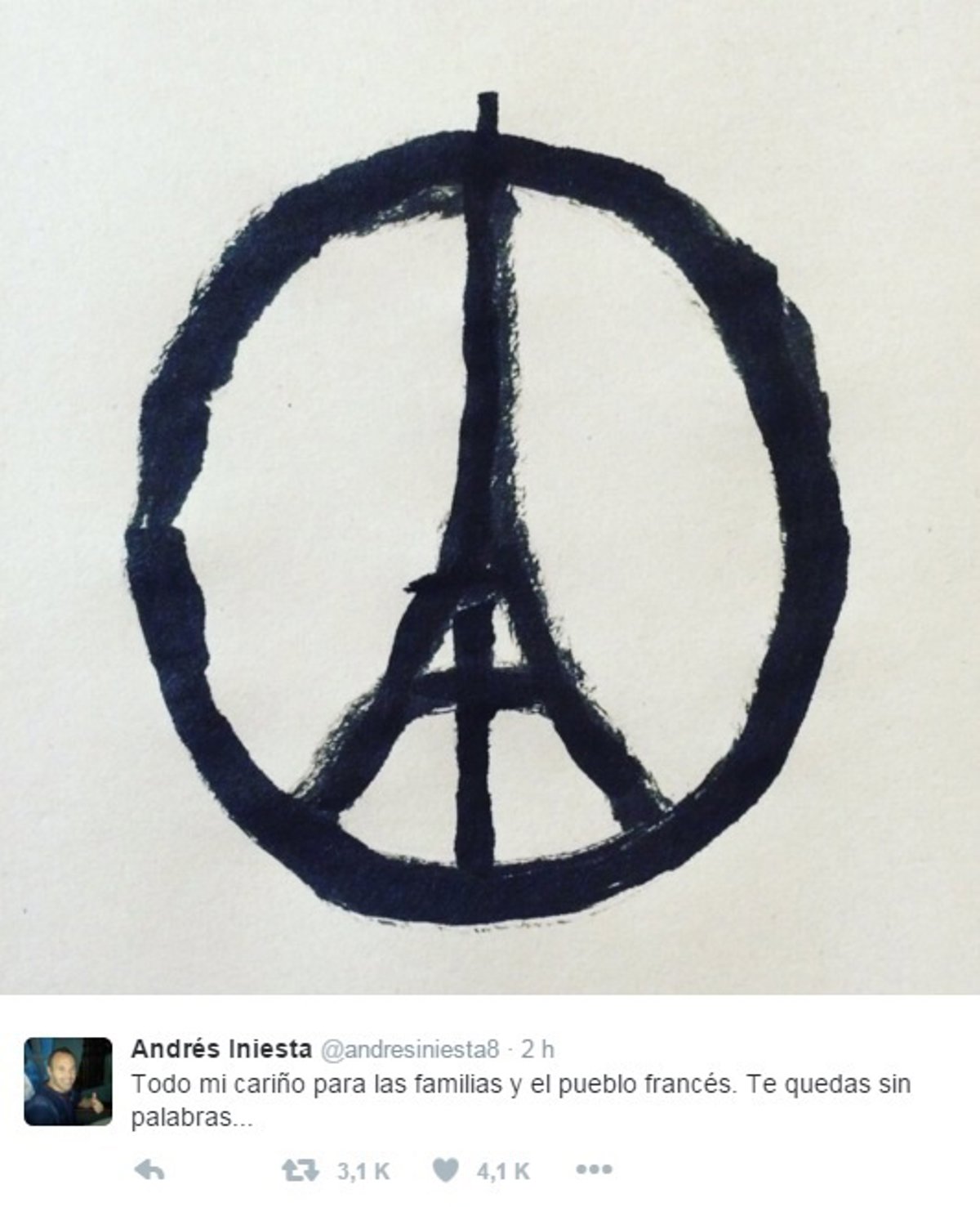 El internacional español y centrocampista del FC Barcelona Andrés Iniesta tampoco quiso permanecer al margen del dolor. "Todo mi cariño para las familias y el pueblo francés. Te quedas sin palabras...", aseveró.