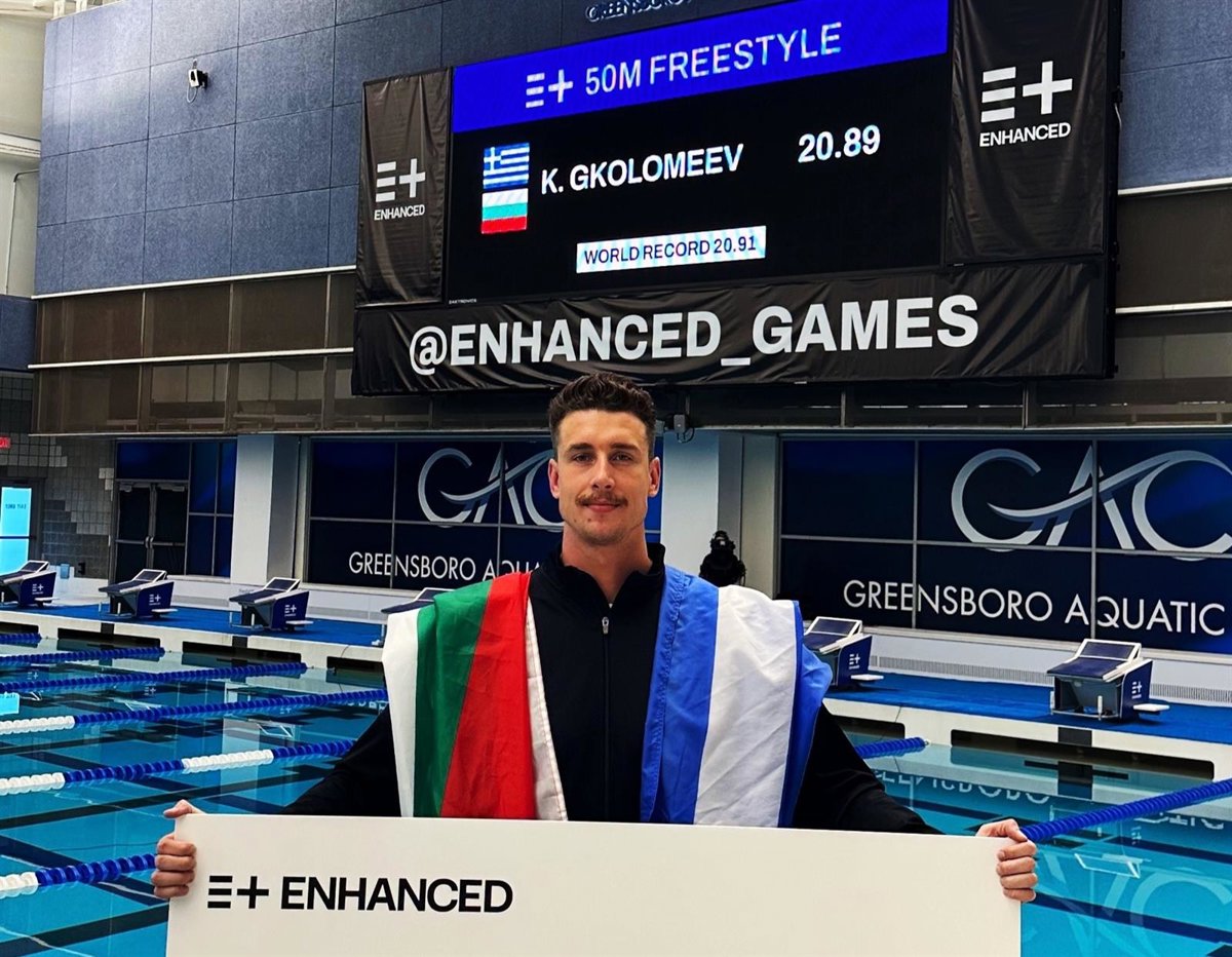 El nadador griego de origen búlgaro Kristian Gkolomeev batió el primer 'récord mundial' de la historia con dopaje deliberado, con una marca de 20.89 en los 50 metros estilo libre en la presentación de los Enhanced Games, los juegos sin controles antidopaje.