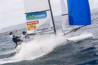 Este lunes la señal de Atención para la primera prueba está programada para las 11:00 horas, y no será hasta el próximo sábado cuando se conocerá al primer campeón del mundo de la clase Nacra 17 desde que se incluyó en el programa olímpico para Río 2016.