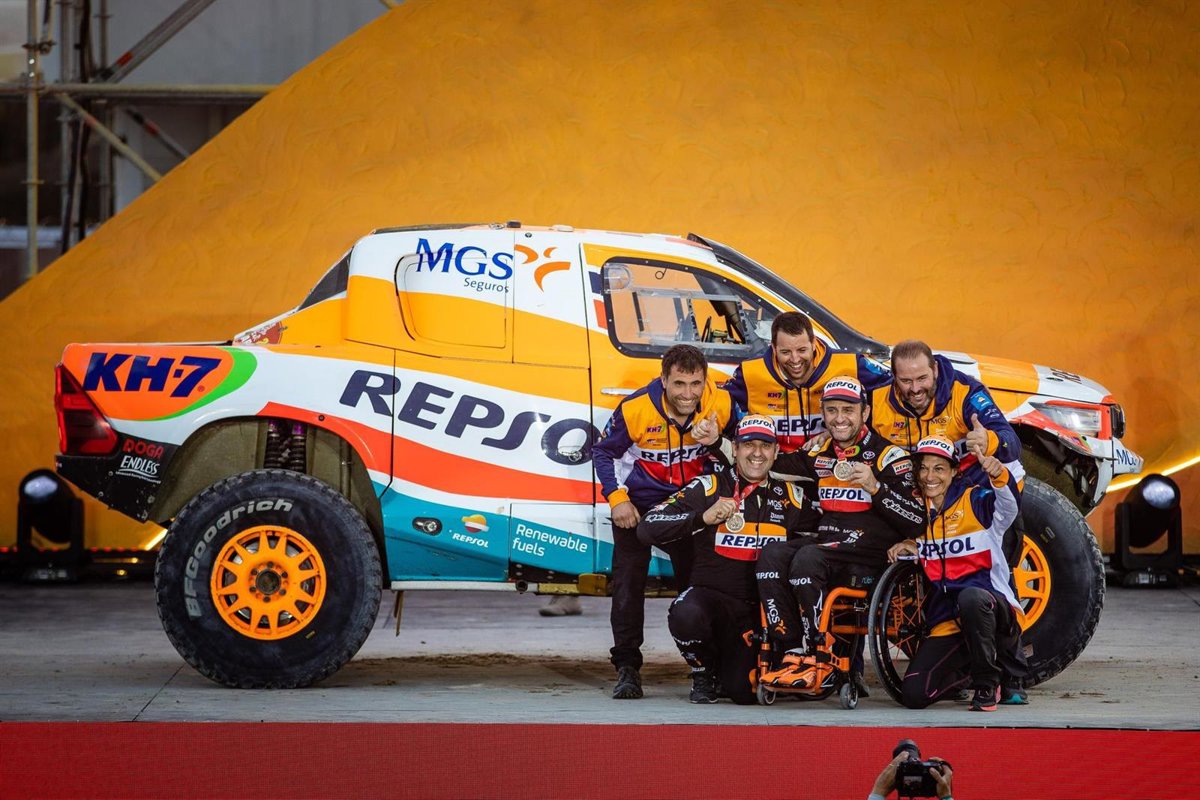 "Al final de todo Dakar siempre tengo una lista muy larga llena de peticiones, pero este año me conformo con seguir trabajando al lado de este increíble equipo con el apoyo de Repsol, MGS Seguros, KH-7 y Toyota España", dijo Esteve después de cumplir misión de nuevo con Txema Villalobos.