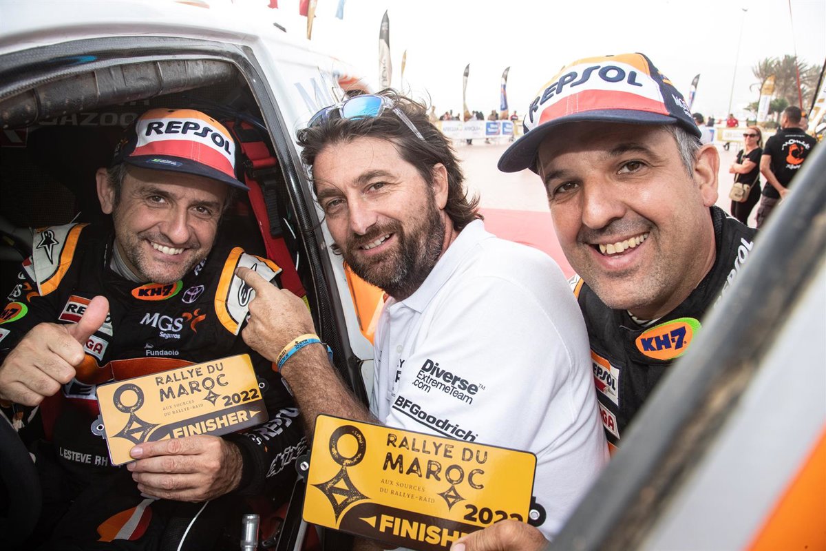 Isidre Esteve y Txema Villalobos celebran su séptima plaza en la general del Rally Marruecos 2022 - CRISTIANO BARNI/REPSOL RALLY TEAM