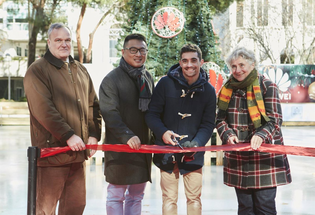 Por su parte, el director de Marketing de Huawei España, Ramiro Larragán, expresó que esta pista de hielo pretende "devolver a la sociedad española todo lo que ha hecho" por la compañía china. "El cien por cien de la recaudación irá a CRIS contra el Cáncer. Es un pequeño grano de arena, por favor, venid a la pista, es maravilloso", añadió.